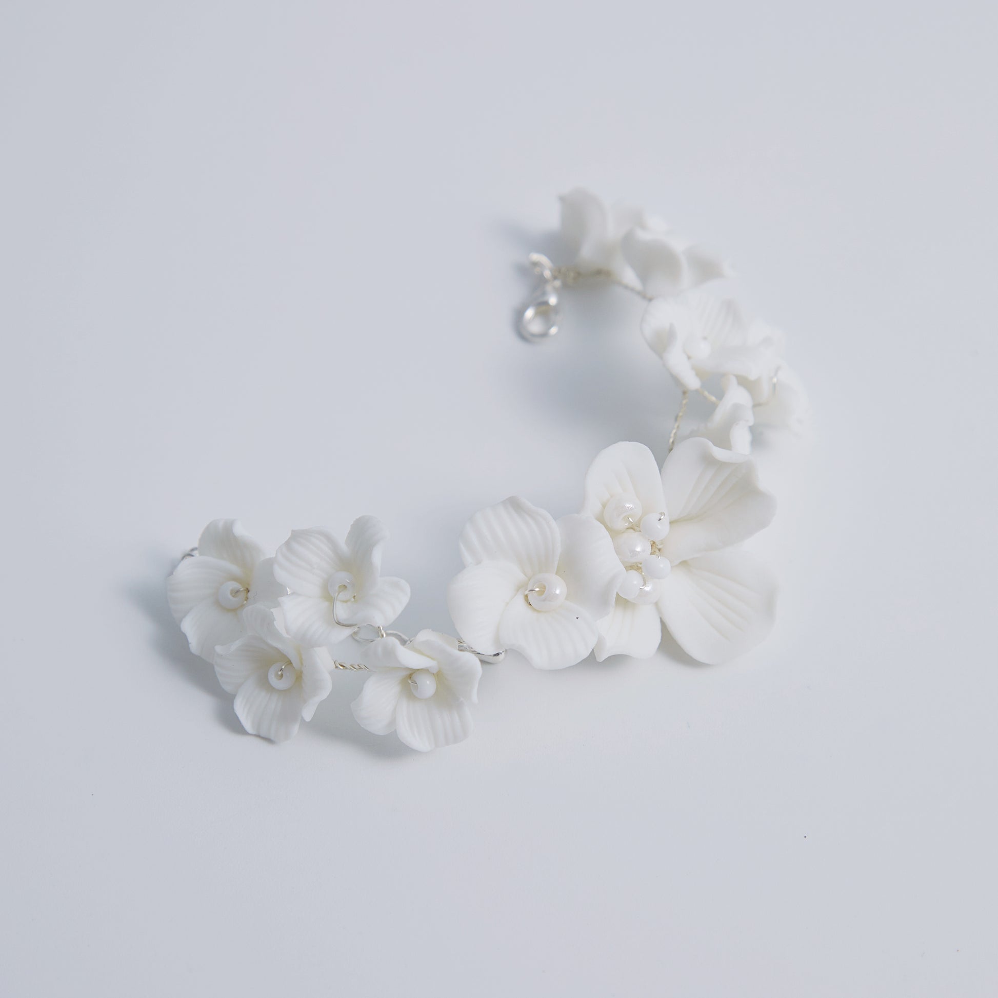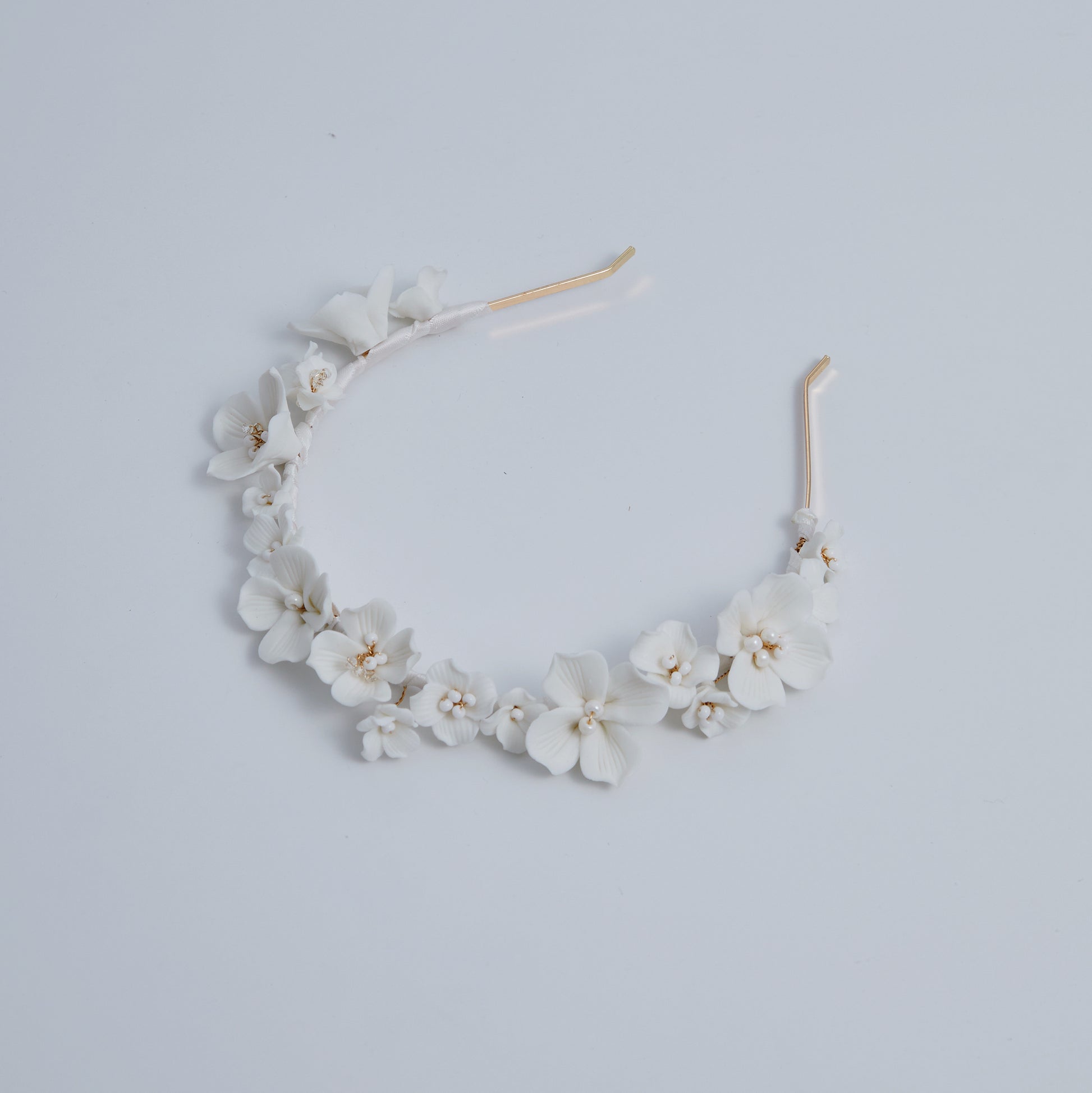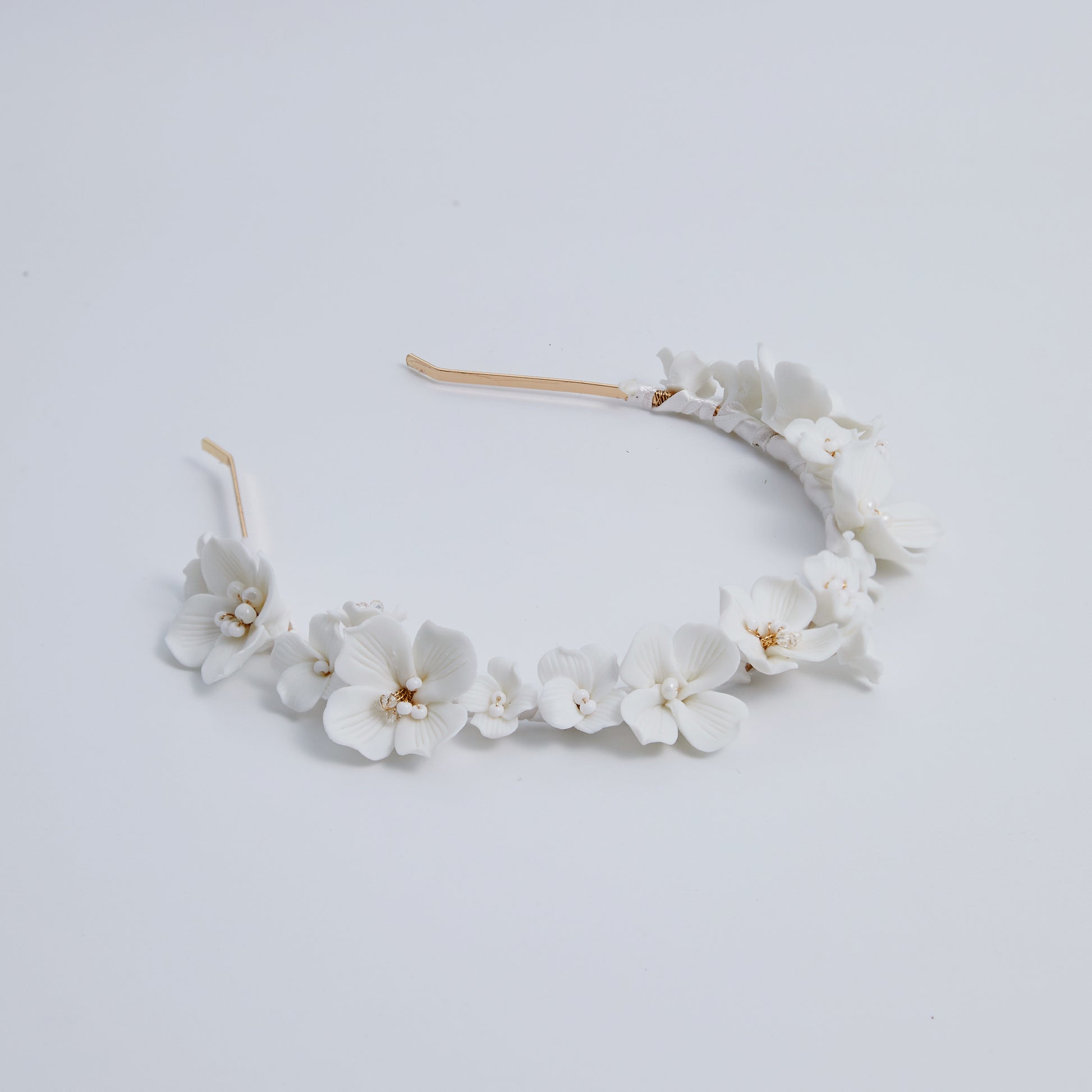 Weißes Brautstirnband aus zartem Porzellan mit Blumenmuster