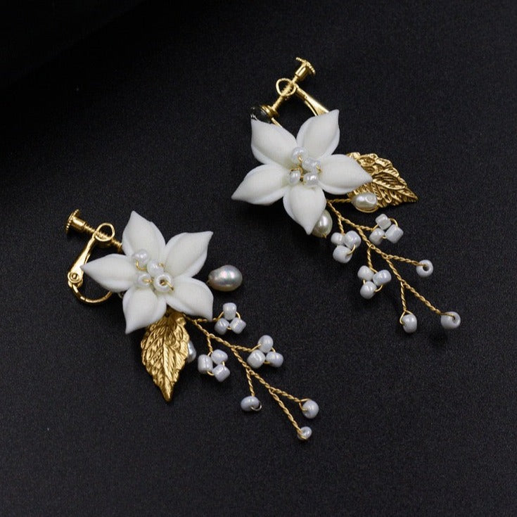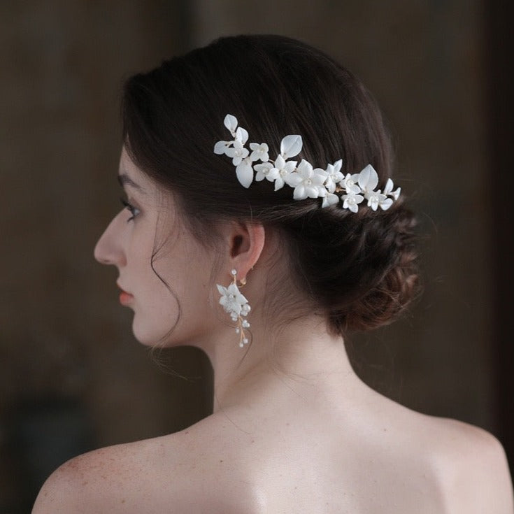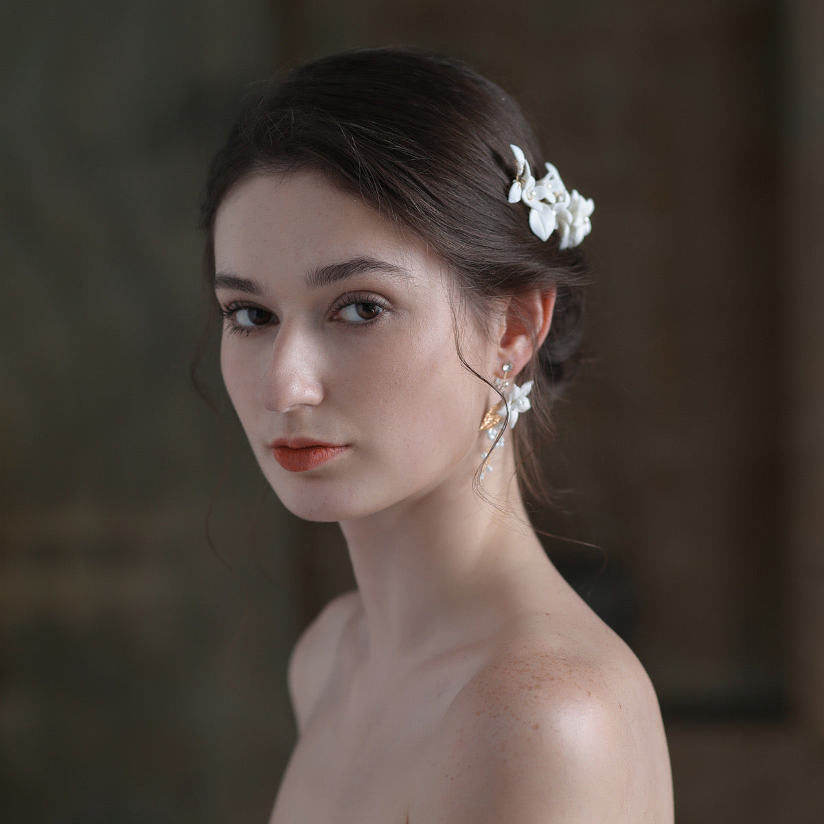 Vervollständigen Sie Ihr Brautoutfit mit unseren passenden Blumenohrringen aus weißem Porzellan.